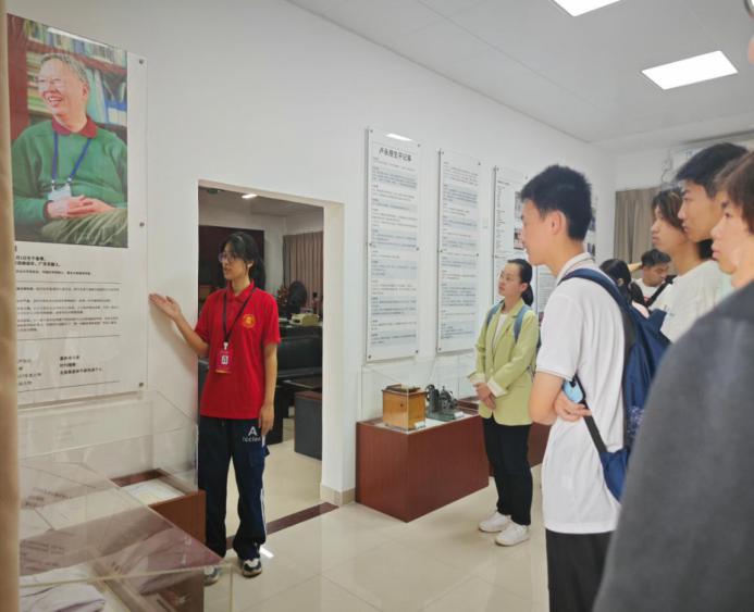 青马班学员首先来到卢永根院士办公室旧址进行参观学习。在讲解员的带领下,同学们通过一张张照片、展板深入学习了卢院士的生平事迹,通过一件件实物感受卢院士的学风严谨。
