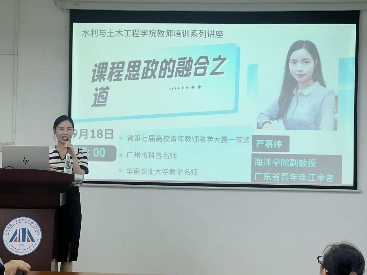 为全面落实立德树人根本任务,深入推进课程思政建设,提升教师思政育人能力,学院于2025年9月18日在学院报告厅举办课程思政专题培训讲座。本次讲座聚焦“课程思政的融合之道”,特邀海洋学院副教授严慕婷担任主讲,学院副经理韦未主持,全体教职工参加了讲座。